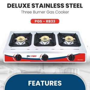 PIONEER DELUXE STAINLESS STEEL THREE BURNER GAS COOKER - (PGS-RB33)
